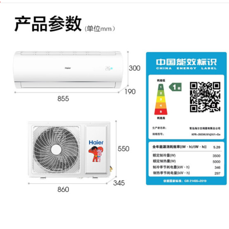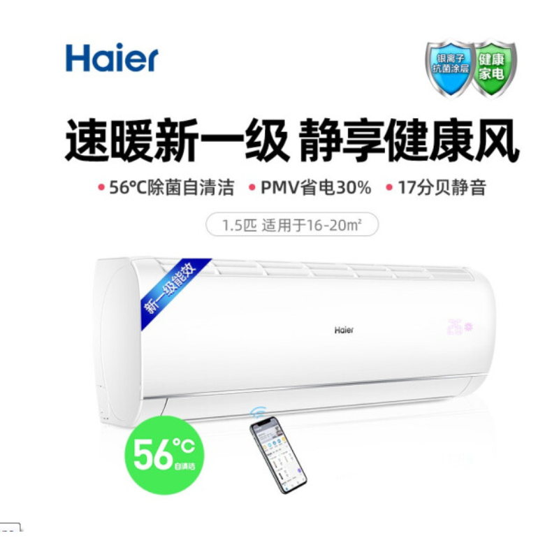 海爾(Haier)1.5匹 新一級能效省電 智能 自清潔 變頻冷暖壁掛式空調(diào)掛機 速享風(fēng) KFR-35GW/03KBA81AU1