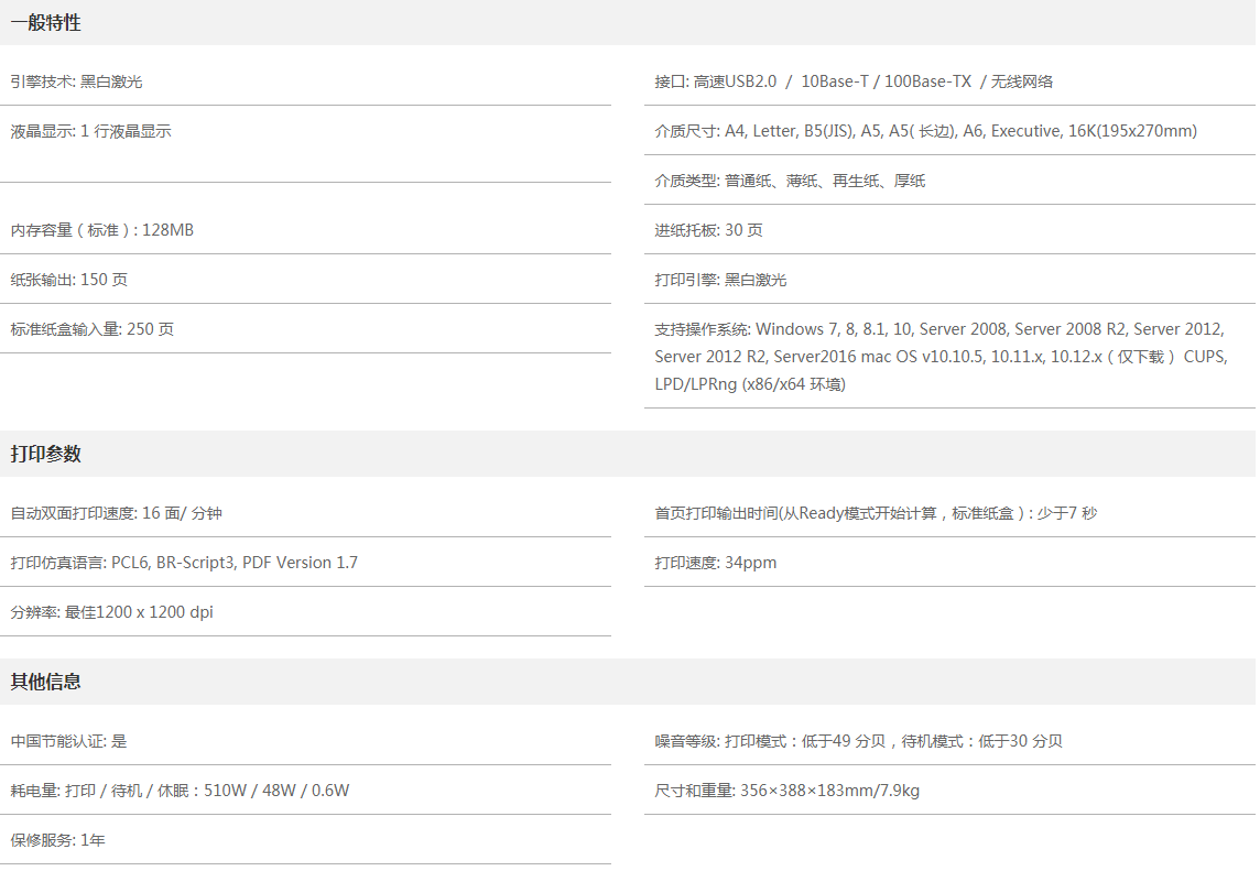 ●高達(dá)34ppm的連續(xù)打印速度,能滿足您大印量的辦公需求。