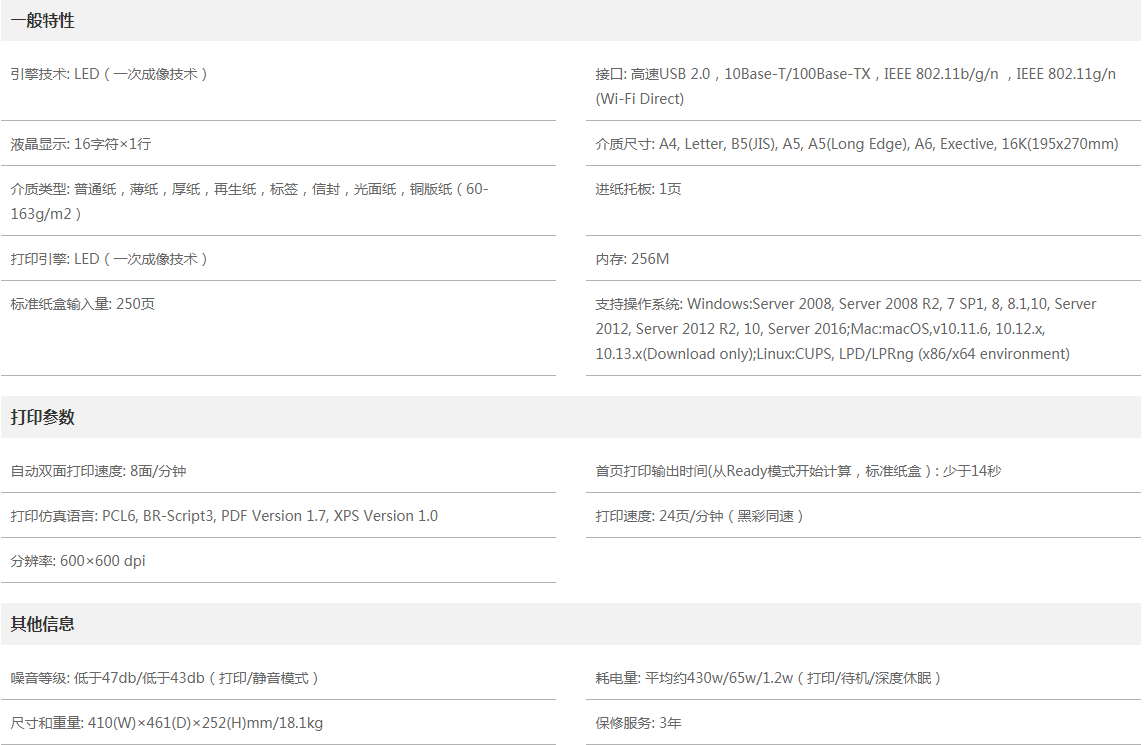 ● PCL6, BR-Script3, PDF Version 1.7, XPS Version 1.0高級打印語言