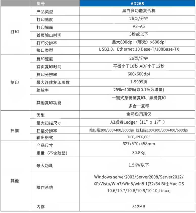 震旦打印機(jī)AD268黑白多功...