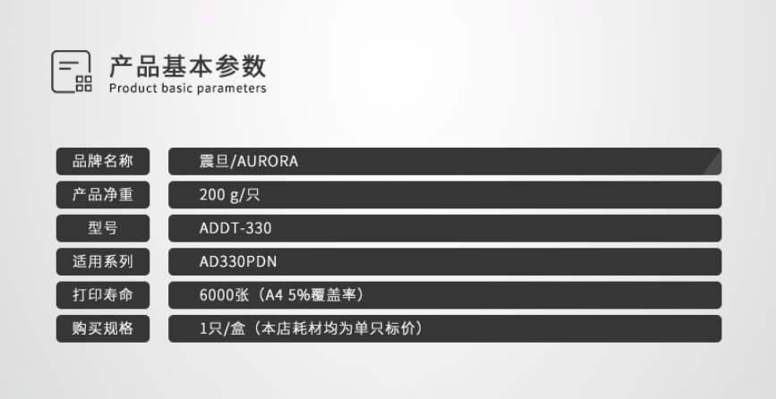 震旦碳粉ADDT-330復(fù)印機(jī)耗材粉盒標(biāo)準(zhǔn)容量/小容量/大容量 適用AD330PDN機(jī)型 ADDT-330 大瓶 6000頁
