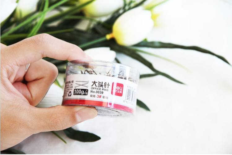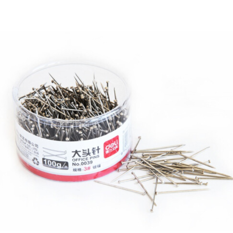得力(deli)3#鍍鎳大頭針 100克/筒