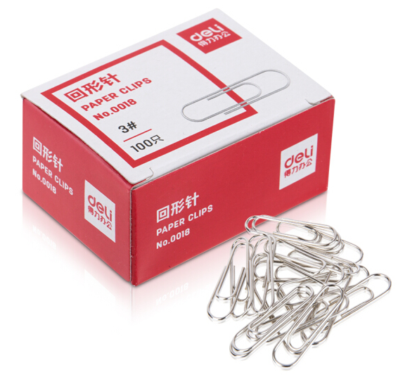 •  得力(deli)3#金屬回形針 鍍鎳防銹曲別針 100枚/盒