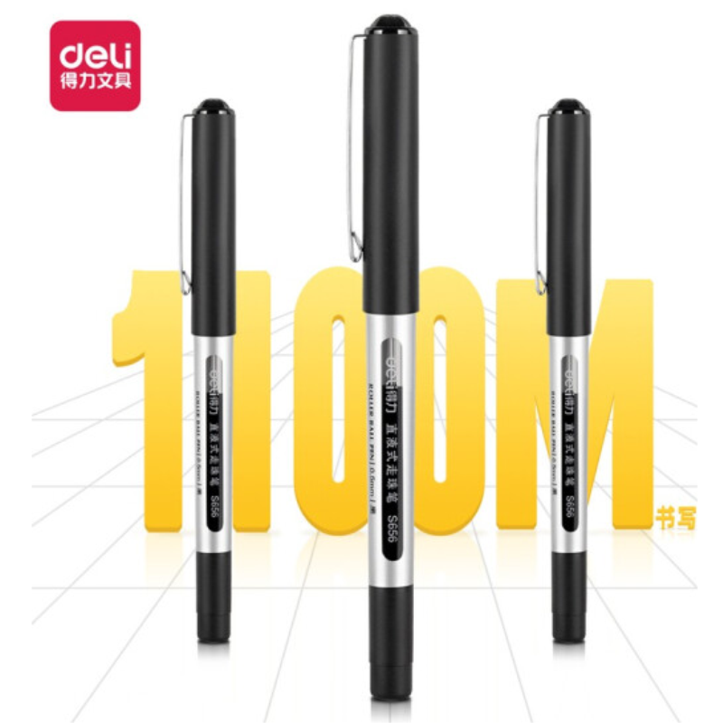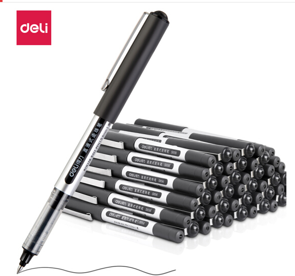 得力(deli)0.5mm直液走珠筆簽字筆 黑色辦公中性筆水筆33475 辦公用品