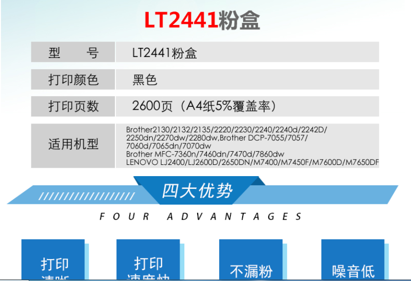 簡(jiǎn)彩(JEYCHARN) LT2441 噴墨盒 粉盒 適用聯(lián)想/LJ2400/LJ2600D/2650DN/M7400/M7450F/M7600D/M7650DF