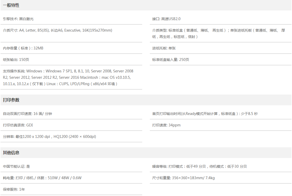 ● 高達34ppm的連續(xù)打印速度,能滿足您大印量的辦公需求。