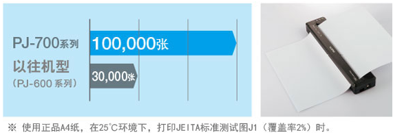機(jī)器壽命達(dá)到A4尺寸約100000張※,達(dá)到以往機(jī)型的3倍以上??砷L(zhǎng)期放心使用。