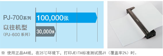 機(jī)器壽命達(dá)到A4尺寸約100000張※,達(dá)到以往機(jī)型的3倍以上??砷L(zhǎng)期放心使用。