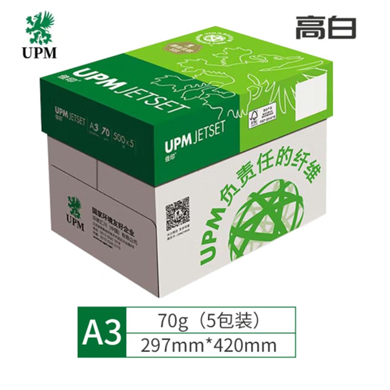 佳印 復印紙 A3 70g 佳印500張一包純白高白打印紙5包裝一箱 佳印高白(A3-70g)5包