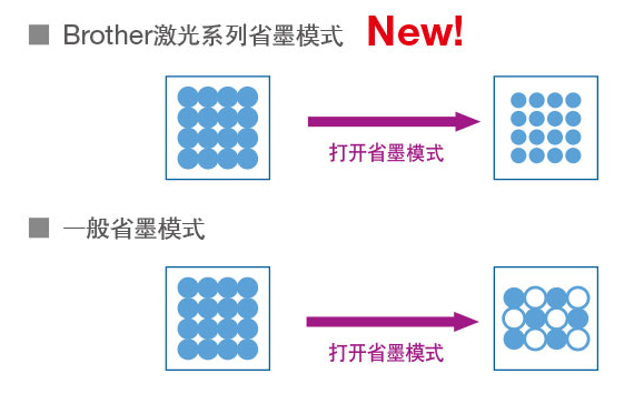 Brother省墨模式是通過縮小墨點(diǎn)空間大小來完成,墨點(diǎn)數(shù)量保持不變,所以即使打開省墨模式也不會(huì)影響打印清晰度。