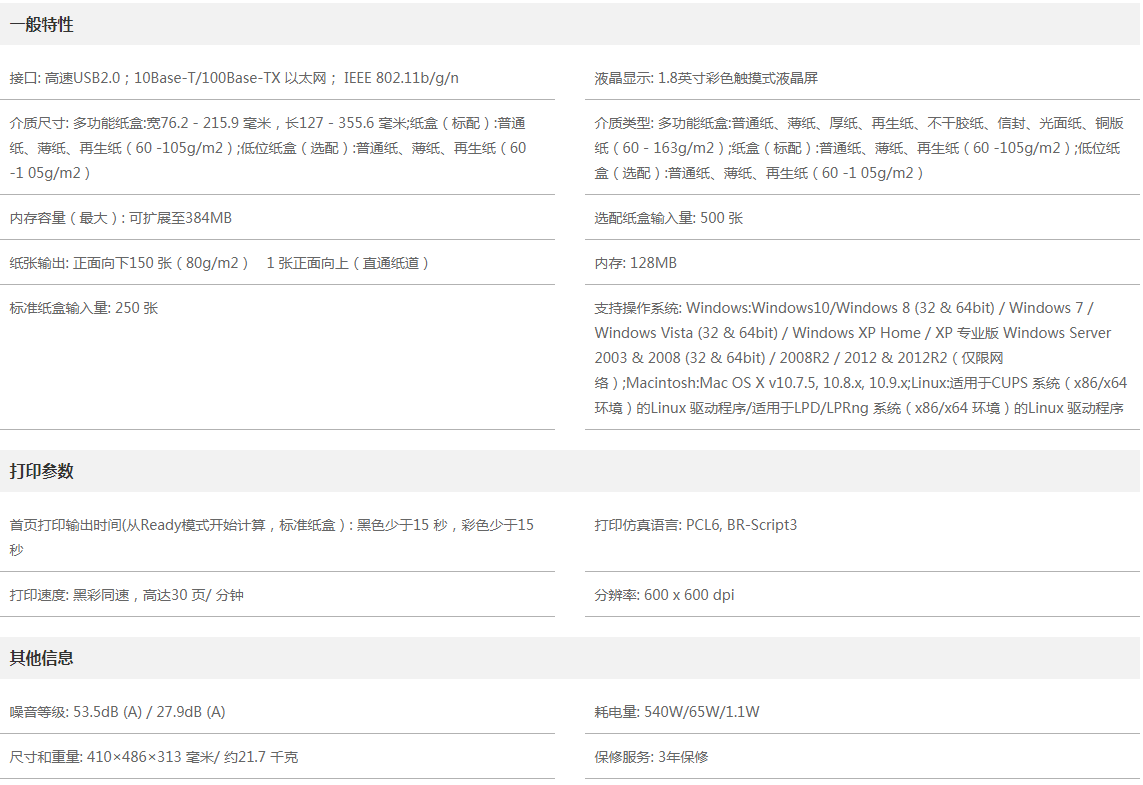 ● 黑彩同速打印高達(dá)30頁(yè)/分鐘